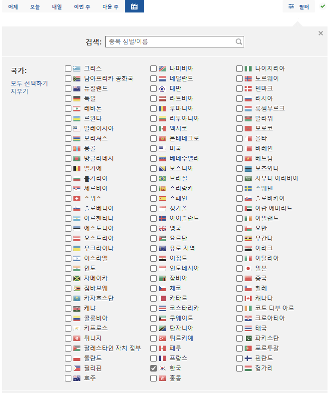 그리고 필터에서 한국을 제외한 모든 국가를 체크 해제.
