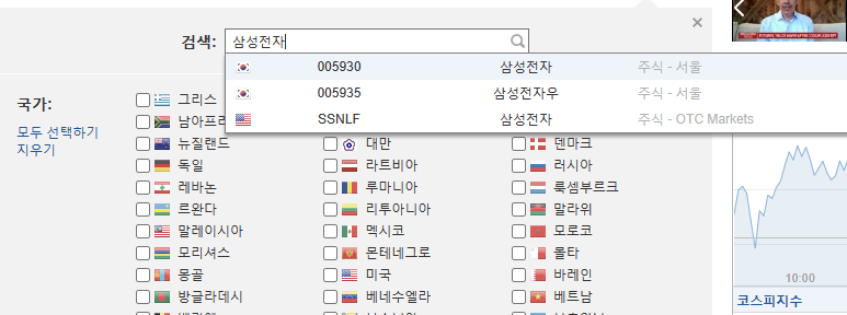 만약 나스닥 종목을 찾는거라면 미국에 체크를 해주면 된다.