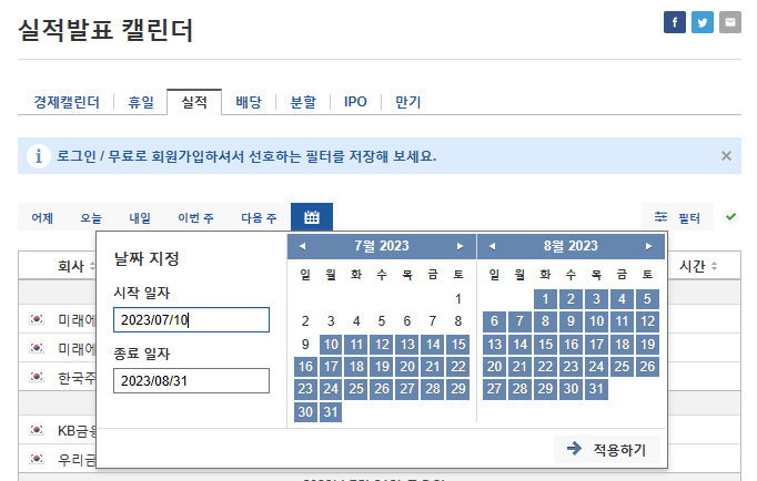 기업 실적 발표 날짜 확인하기