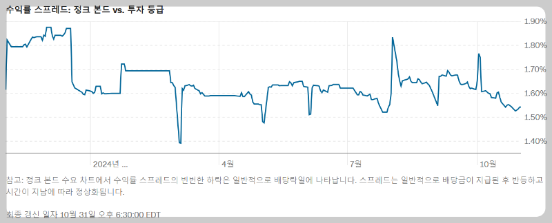 숫자가 작을수록 정크본드 선호도가 올라가고 시장이 과열되어 있다는 뜻이다