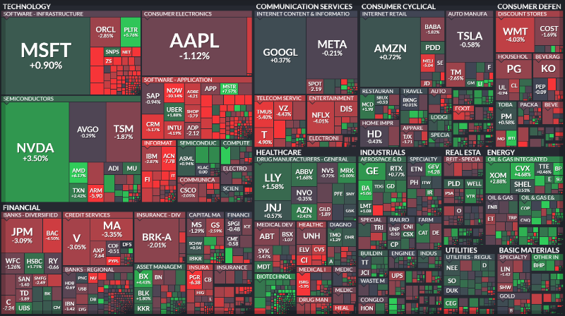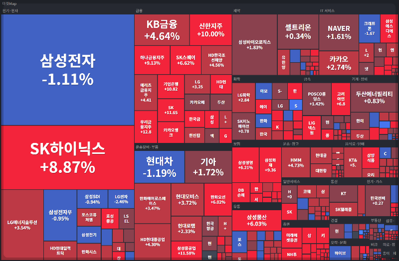 대형주 중에서 엔비디아만 밝은 초록색이다